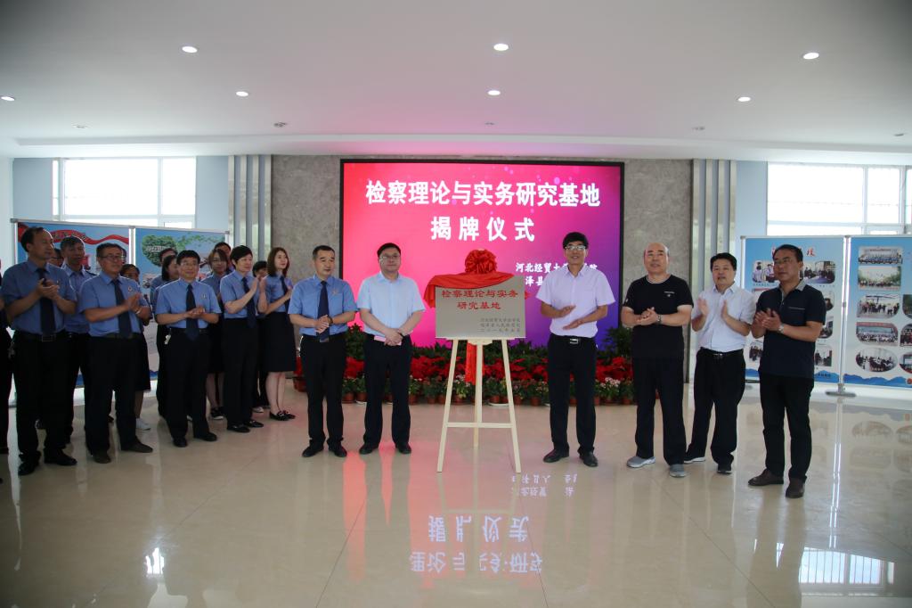 5月29日下午,开云官网与邯郸市鸡泽县人民检察院联合成立的“检察理论与实务研究基地”揭牌仪式暨首次专题研讨会在鸡泽县检察院举办并召开。开云官网党委书记武玉鹏、院长王利军、硕士生导师、教授张亚军、副教授张永进,市检察院党组成员、政治部主任李建军、综合处处长古红英、教育处处长张志强,县委常委、政法委书记刘志强,县检察院全体干警参加了活动。