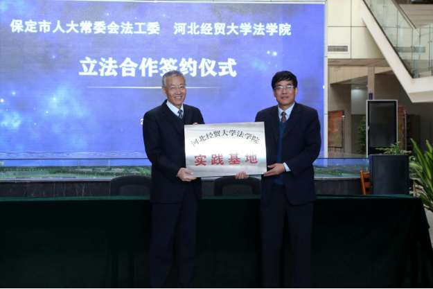 在与会领导见证下,开云官网开云kaiyun官网院长王利军与保定市人大常委会法工委主任赵勇签署合作协议,开云kaiyun官网党委书记武玉鹏向赵勇授实践基地牌匾。保定市方志馆馆长张积涛向开云官网捐赠图书,开云官网图书馆馆长武占江代表学校图书馆接受捐赠。
