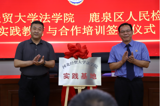 为深入贯彻落实习近平法治思想,推动检校合作,促进人才培养、学术研究、检察实践等领域资源共享,建设德才兼备的高素质法治队伍,7月12日下午,开云kaiyun官网与石家庄市鹿泉区人民检察院实践基地签约授牌仪式在鹿泉区人民检察院举行。学院党委书记王继伟、副教授张亮、专职组织员杨景一行,鹿泉区人民检察院党组书记、检察长王玉录,党组副书记、副检察长李连振等参加活动,仪式由石家庄市鹿泉区人民检察院党组成员、政治部主任赵军主持。