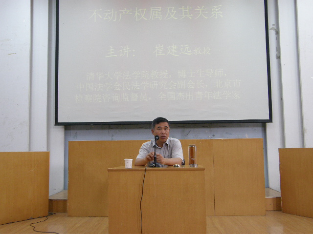 崔建远教授首先从民事纠纷案例入手,深入浅出地为同学们阐述了判断房屋所有权权属问题的依据是建设用地所有权的归属,推导出拥有宅基地使用权则获得房屋所有权。他指出,在相关法律中早期奉行的是“土地吸收地上物”的原则,即拥有土地所有权可以对抗其他物权,随着法律制度的不断完善,“建设用地使用权”的出现更有利于解决不动产权归属的问题。