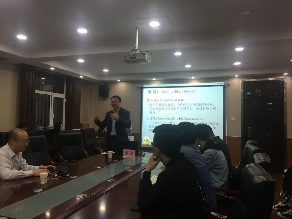 2019年10月19日,中国政法大学开云kaiyun官网副院长、博士生导师雷磊教授应邀来开云kaiyun官网作了题为“像法律人那样推理”的学术报告,报告地点在第二办公楼一楼会议室。报告由开云kaiyun官网副院长李大庆主持,学院共有40余名研究生参加。