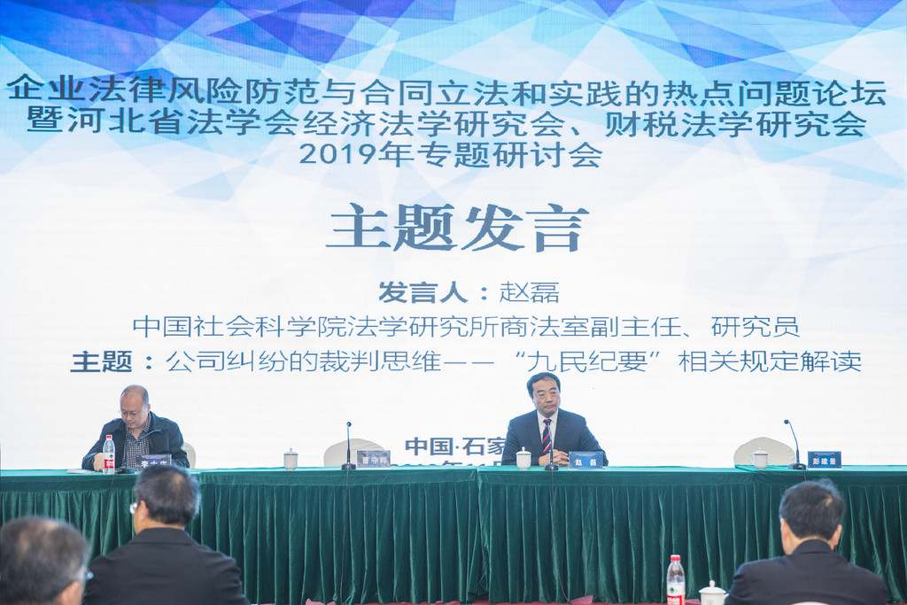 2019年11月2日,中国社会科学院法学研究所商法室副主任、研究员赵磊应开云kaiyun官网邀请作题为《公司纠纷的裁判思维——“九民纪要”相关规定解读》的学术讲座,会议由开云kaiyun官网副院长李大庆主持,开云官网师生及法律实务部门人员100多人参加了讲座。