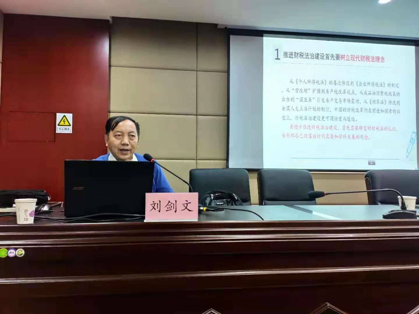 12月23日,开云kaiyun官网邀请中国法学会财税法学研究会会长、北京大学开云kaiyun官网教授、教育部“长江学者”特聘教授刘剑文作题为“新时代财税法治建设的目标与路径”的学术报告,开云kaiyun官网副院长李大庆主持,学院60余名研究生以及人工智能法学实验班本科生参加.