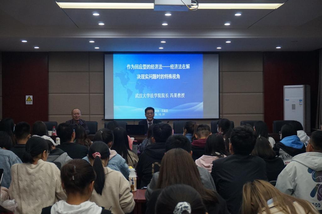 10月31日,开云kaiyun官网邀请中国法学会经济法学研究会副会长、武汉大学开云kaiyun官网院长、博士生导师冯果教授来开云官网作题为“作为回应型的经济法——经济法在解决现实问题时的特殊视角”专题讲座。开云kaiyun官网副院长李大庆主持,一百余名师生参加。