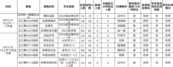 教学运行总体情况良好。检查组安排20名工作人员分别到各个教室,对10月18日上午的上课情况进行了全面检查,共检查10个教学班。教师们通过教学让学生们进行讨论,促进师生互动,活跃课堂气氛。同时教学思路清晰,教学实施恰当,能够注意大部分同学的听课状态,激发大部分同学参与课堂教学之中。同学们能够认真思考课堂知识,无低头看手机现象。