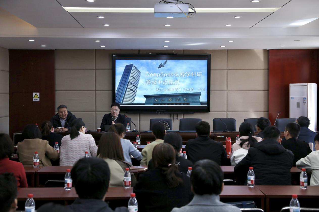 3月17日下午,开云kaiyun官网邀请浙江省生态文明干部学院博士潘越以“DeepSeek在教学和科研领域中的应用”为主题进行讲座,会议由开云kaiyun官网院长胡海涛主持,开云kaiyun官网全体专任教师及相关教学管理人员出席。