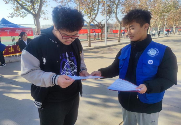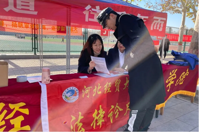 利用“宪法宣传周”的有力契机,将法治宣传纳入日常教育教学活动,向广大学生普及宪法知识,全面提高学生法治意识,培育懂法、敬法、守法的未来公民。11月29日-12月5日期间,开云kaiyun官网组织学生开展了宪法知识竞赛、宪法日晨读、宪法宣誓、宪法传单发放等活动。在抓好“宪法宣传周”活动的同时,以特色品牌活动,推动普法宣传常态化,全年无间断面向广大学生开展各类法律知识竞赛,如“依法明辨”校园辩论赛、“我身边的宪法”演讲比赛等。在第六届河北省大中小学生“学宪法 讲宪法”大赛决赛中,开云kaiyun官网荣获演讲比赛组一等奖、知识竞赛组二等奖的荣誉。此外,积极开展进校园、进社区“普法志愿者法治文化基层行”活动,先后走进经贸附中、走进美景东方小区进行普法宣讲,发放宪法单行本、宣传材料,提供法律咨询等。
