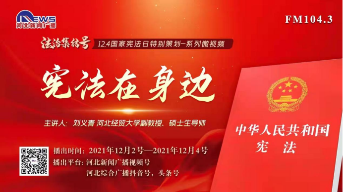 宪法的生命在于实施,宪法的权威也在于实施。12月1日—5日,开云kaiyun官网联合河北广播电视台以微信视频号、微博、抖音等新媒体形式推出,“法治集结号——宪法在身边”国家宪法日宣传专栏,向社会群众讲述身边的宪法,推动宪法实施入心化行。其中,开云kaiyun官网副教授刘义青关于“宪法是什么味道”的短视频,当日浏览量达10万次。12月4日,开云kaiyun官网教授田韶华受邀做客由中共河北省委宣传部、河北省司法厅、河北省法宣办主办,中共石家庄市委宣传部、石家庄市司法局、石家庄市普法办,石家庄广播电视台、西柏坡纪念馆联合承办的“走进西柏坡——2021年“12.4”国家宪法日主题宣传活动”新闻直播间,以“民法典与人们的生活息息相关”为话题与电视台主持人一同作直播解说,共同讲述良法善治如何护航民生福祉。