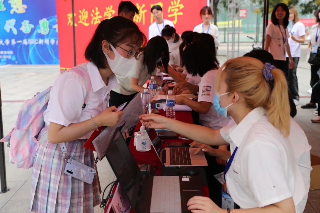 把行李放好后,新生们陆续来到迎新摊位登记报到,把录取通知书、密封档案、团关系等资料上交,导助们耐心解决学生们生活上,学习上的问题,学长学姐们积极为同学们答疑解惑,介绍本学院的情况,学生自行观看展板使学生们对自己的学院有了初步了解,相信他们会更加热爱自己的班级与学院。