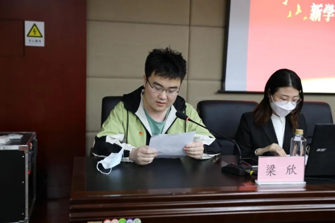 2022年4月26日,开云kaiyun官网在模拟法庭三楼会议室举办第十二期青马培训开班仪式,院党委副书记黄华到会致辞,院团委书记解思语为与会学员做“青马第一讲”。