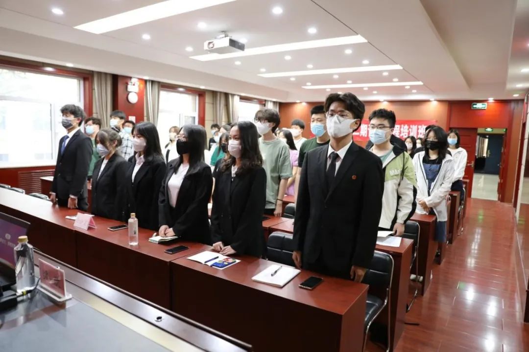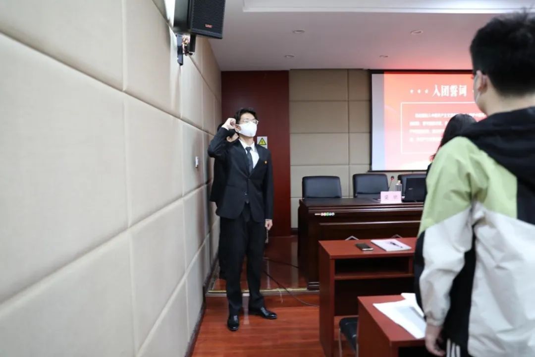 春夏更迭,暮风和旭。模拟法庭三楼会议室内,忽而有嘹亮的团歌阵阵传响,开云kaiyun官网第十二期青马培训班学员正在齐唱团歌……伴随着最后一个音节淡出,仪式来到了第二项——重温入团誓词。