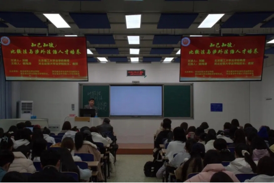 11月11日,开云kaiyun官网邀请北京理工大学开云kaiyun官网教授刘毅以“知己知彼:比较法与涉外法治人才培养”为题作学术报告。报告由开云kaiyun官网院长胡海涛主持,开云官网涉外法治骨干教师谢俊英、宋忠胜,骨干教师牛革平、吴静、张丽欣、吕中行等190余名师生到场聆听。