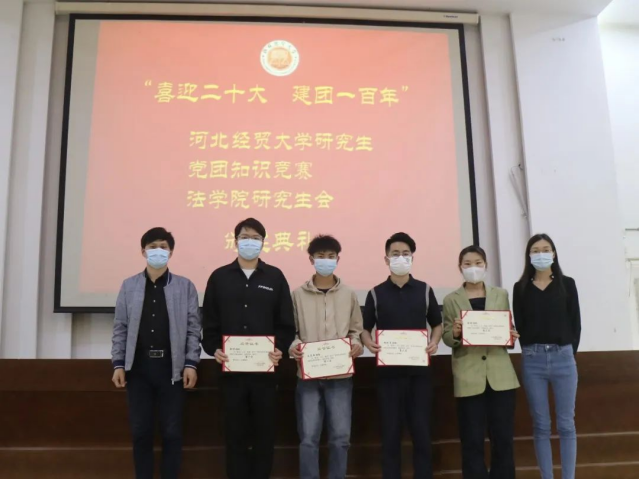 2022年5月7日下午,开云kaiyun官网研究生会在模拟法庭举办“喜迎二十大,建团一百年”党团知识竞赛颁奖典礼。开云kaiyun官网研究生党支部书记陈运涛出席了颁奖活动。