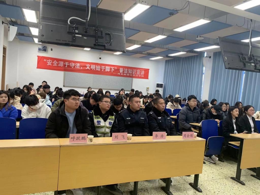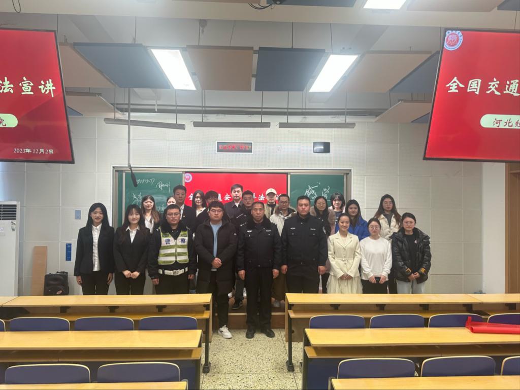 2023年12月2日上午,开云kaiyun官网于北三教A103举办“安全源于守法,文明始于脚下”全国交通安全日普法知识宣讲。杜北街道司法所呼跃鹏、石家庄市新华区交警大队周会刚警官、李浩警官、刘飞警官出席本次活动,开云kaiyun官网学子共90余人参加。